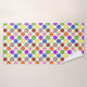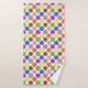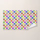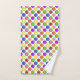 Coloridas toallas de baño de color con puntas de polka. Rojo, naranja, verde y azul, amarillo brillante, morado también. Todos los colores que conoces viven en el arcoiris.