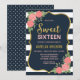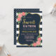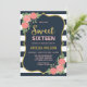 ¿Organizando una fiesta para la cumpleañera para celebrar sus 16 años? Invite a amigos y familiares con esta bonita invitación de dulces dieciséis que presenta un borde de oro falso, rayas azules y blancas, rosas rosadas y un reverso con patrón.