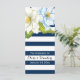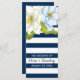 Las rayas azules oscuras floridas floridas ceremonia boda floral moderna y programa fiesta con elegantes flores blancas y dos tonales azules con hojas verdes en un patrón a rayas hecho de rayas azul marino y blancas. Esta elegante plantilla de boda contemporánea es totalmente personalizable y es ideal para un boda de primavera o verano.