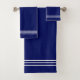 Elegantes rayas blancas en el juego de toallas de baño azul marino.