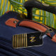 Un bonito diseño monogramado y rayado para identificar su equipaje.. franjas falsas de color dorado con su propio nombre inicial y de pila