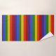 Las toallas son coloridas y tienen rayas horizontales de arco iris.