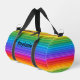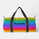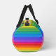 Bolsa Duffel de tiras de arco iris horizontal con texto de personalizable. Otras opciones de bolsos disponibles en el menú desplegable.