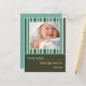 "Rayas de Bosque" anuncio de nacimiento verde/aqua con foto. Personalice esta moderna y elegante tarjeta postal con la foto y detalles de su bebé para un anuncio de nacimiento único.