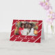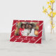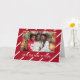 Este diseño alegre tiene rayas rojas y blancas de caramelo. En la parte frontal hay un área para tu foto de vacaciones. Todo el texto se puede personalizar.