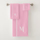 Crea tu propio personalizado, personalizado, fresco, elegante, elegante, clásico, diseño de rayas de carreras blancas, moderna, minimalista, elegante tipografía de caligrafía blanca monogramada inicial en color rosa, de moda, lavable automático, juego de toallas de baño que incluye toalla de baño de 30" x 60", toalla de mano de 16" x 28" y lavado de 13" tela. Para el personalizar, simplemente escriba su monograma / iniciales. Hace un gran regalo de personalizado por cumpleaños, día del padre, Día de la Madre, boda, graduación, navidades, vacaciones, años nuevos, y más, para sus seres queridos, hijos, nietos, mamá, papá, abuelo, abuela, hermano, hermana, hijo, hija, tío, tía, esposo, esposa, novia, novio, amigos y familia.