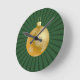 El Starburst Stripes Ornament Holiday Wall Clock es moderno y elegante, con un estreno dinámico en verde oscuro y adorno navideño adornado con copos de nieve en oro. Fácil de personalizar, simplemente personaliza con el texto que elijas. Haga clic en el botón "Personalizar" para obtener más opciones de personalización.