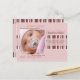 "Rayas de Invierno" anuncio de nacimiento fotográfico rosa/marrón. Personalice esta moderna y elegante tarjeta postal fotográfica con la foto y los detalles de su bebé para un anuncio de nacimiento único.