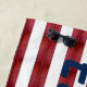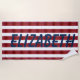 Serie, de planchas abstractas, apiladas para formar, rayas anchas, en tonos desvanecidos de, rojo, rosa, azul y negro, contra blanco, fondo-con tu elección de Monograma, en azul marino.