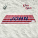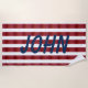 Serie, de planchas abstractas, apiladas para formar, rayas anchas, en tonos desvanecidos de, rojo, rosa, azul y negro, contra blanco, fondo-con tu elección de Monograma, en azul marino.