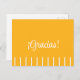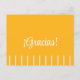 Tarjeta postal de agradecimiento española de color amarillo dorado ¡Gracias! con algunas rayas blancas.