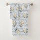 Un hermoso juego de toallas de baño con diseño floral blanco y rayas azules shabby chic vintage. El juego incluye una toalla de mano, una toalla de baño y un paño de lavado. Es un regalo ideal para una ducha de novia o regalo de boda.