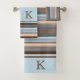 Hermosa decoración contemporánea de color azul oscuro y claro, blanco roto cremoso, beige, taupe y acuarela de rayas marrón oscuro. Con espacio para personalizar con monograma o iniciales de su elección. Diseño fresco original, caprichoso y divertido disponible en una variedad de baños divertidos, elegantes y a la moda y decoración decorativa de la sala de pólvora, acentos y accesorios, y hermosos y modernos elementos de playa para la moda de moda y amante del arte, estilo retro vintage o amante del humor geométrico abstracto.