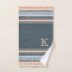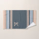 Hermosa decoración contemporánea de color azul oscuro y claro, blanco roto cremoso, beige, taupe y acuarela de rayas marrón oscuro. Con espacio para personalizar con monograma o iniciales de su elección. Diseño fresco original, caprichoso y divertido disponible en una variedad de baños divertidos, elegantes y a la moda y decoración decorativa de la sala de pólvora, acentos y accesorios, y hermosos y modernos elementos de playa para la moda de moda y amante del arte, estilo retro vintage o amante del humor geométrico abstracto.