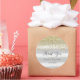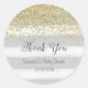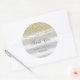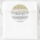 Pegatina redondo para la ducha de bebé con purpurina de oro falso y fondo de rayas grises.
