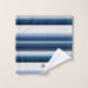 Las rayas horizontales, anchas y estrechas, en azul, negro, gris y blanco, forman un conjunto clásico y elegante de toallas.