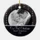 ¡Nuestro primer navidad de la foto adorna características un fondo rayado negro y blanco hermoso con una banda negra! ¡Personalice con su información y fecha y usted están todos fijan para ir! El regalo anticuado maravilloso del recuerdo para su primer navidad y una gran adición a usted navidad adornan la colección.