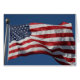 Estrellas y banderas de franjas estadounidenses ondeando en el viento - tarjeta de personalizable completa.