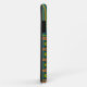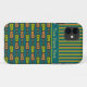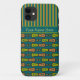Un Funda de moda-funda Mate Xtreme a personalizar para tu smartphone iPhone 5/5s, con un tibio patrón tribal en Naranja-Rojo, Amarillo-Verde y Negro en un fondo Verde azulado, en equipo con un patrón a rayas coincidente. Parte de la colección "Tambores de la jungla" de Pintorly y Pintorly.