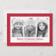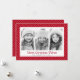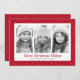 Tarjetas de felicitación de Navidad con un patrón de rayas punteadas lindas, puntos blancos sobre un fondo rojo intenso (o color personalizado). En la parte delantera hay tres fotos personalizables.