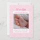 Presenta tu recién nacido a la familia y amigos con este anuncio de bonito que incluye rayas rosas en el frente y un patrón de coordinación en la parte de atrás, dos lugares para incluir fotos de tu grupo de alegría, y nombre del bebé del personalizable, fecha y hora de nacimiento, peso, nombre de los padres y texto que anuncia: "Es un Chica". Añade tus propias fotos y modifica el texto para crear una invitación de bebé única. Este diseño clásico y minimalista mantendrá el foco en su hermoso bebé.