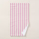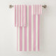 Este conjunto de toallas elegantes tiene una amplia franja rosada, delicadamente sombreada, ideal para el baño femenino o de cabaña.