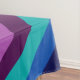 Un mantel de 60" x 104" con un diseño de patrones coloridos de rayas diagonales en verde azulado fresco, azul oceánico, azul marino, púrpura de ciruela y lavanda.