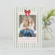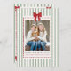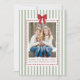 Celebre las fiestas y los recuerdos de su familia con esta tarjeta de Navidad con foto con raya verde salvia y lazo rojo, y resumen del año. Con rayas festivas de color verde salvia, un vibrante lazo de acuarela roja y un marco de puntos caprichoso para la foto de su familia, esta tarjeta combina el estilo moderno con el encanto festivo y divertido de la Navidad. La parte trasera incluye 12 marcos de fotos redondos, perfectos para mostrar los momentos favoritos de su familia de cada mes, editables para resaltar sus recuerdos personales o dejarlos como están para un diseño listo para enviar. Ideal para familias que buscan una felicitación navideña divertida, colorida y personalizada, esta tarjeta también funciona maravillosamente como tarjeta de Navidad de resumen del año, un resumen del año de la familia o un recuerdo fotográfico de "qué año" de las fiestas. Comparta sus recuerdos y