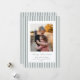 Una clásica tarjeta de vacaciones plana con rayas finas verdes sage y blancas, un mensaje de "Feliz Navidad" en una fuente de pluma de tinta tradicional con texto totalmente personalizable debajo, y una foto. La parte posterior tiene el mismo patrón de rayas, pero se puede cambiar fácilmente por una foto si lo prefiere. Disponible en diferentes colores y con diferentes mensajes de vacaciones en mi tienda.