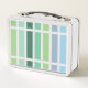 Clásica, a rayas de moda, en tonos azules y verdes.