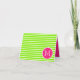 Esta tarjeta preppy incluye rayas verdes y blancas clásicas con un monograma rosa y blanco brillante en la parte delantera y rosa sólido en el interior. Personalice el monograma en la parte delantera con su elección inicial.