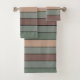 Set de toallas de baño de tres tamaños decorativos y decoración de mobiliario de casa, accesorios impresos con un ilustracion de diseño de arte gráfico de Papel de color marrón y verde con rayas negras por TheFabricSeal print on demand shop en Zazzle.com #ZazzleMade ©️ Original. https://www.zazzle.com/store/thefabricseal Estos hermosos tonos de color están inspirados en la extensa paleta de colores de la temporada de invierno y se pueden usar y recibir en cualquier época del año. He establecido 20 grupos de 5 combinaciones de colores que han sido listados en algunos de los productos de venta más populares en nuestra tienda, que pueden transferirse a casi cualquiera de los miles de productos de alta calidad en Zazzle durante los Procesos de Personalización y Edición. #BohoFashion #Accessories #BohoStyle #FashionInspiration #BohemianVibes #UniqueDesigns #ColorfulAccessories #StandOut #BohoChic #ZazzleMade #Zazzle #FineArt #OriginalDesign #Ilustracion #MerryChristmas #Winter #WinterSeason Convierta su cuarto de baño en su propio oasis personal, con una toalla de personalizado perfecta para secarse con estilo. El juego de toallas es un gran regalo para muchas ocasiones. Las tres toallas de baño también se pueden adquirir por separado. Haga clic en Personalize It y, a continuación, utilice la herramienta Editar el diseño para obtener más opciones de personalización si fuera necesario, incluyendo la transferencia de este diseño a otros productos de Zazzle. Muchas gracias por elegir nuestra tienda online. Agradecemos su apoyo. Disfruta de tu experiencia de compras. Cindy y Jeff