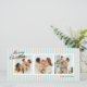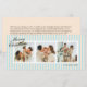 Las pequeñas franjas verticales de color crema y azul celeste le dan a esta tarjeta de vacaciones de tres fotos un ambiente moderno y de moda con fuentes clásicas y un largo mensaje personalizado para amigos y familia.