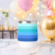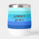 Se presta la paleta de colores del océano y se añade a un Tumbler de Vino Termal fresco de verano. Acá con un simple texto que dice "Blues de verano" tanto en la parte delantera como en la trasera. Manténgalo o personalizar con un nombre u otro texto según su elección.