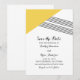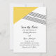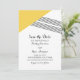 Banda geométrica moderna y de moda Ahorra el Anuncio de Fecha con un triángulo amarillo y acento de rayas delgadas. Esta invitación simple y elegante se configura para que se adapte fácilmente a la información de su boda. Para obtener más opciones de personalización, haga clic en Personalizar.