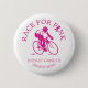 Raza de ciclo para el Pin de la conciencia del cáncer de pecho. Una cinta rosada trae conciencia al cáncer de pecho. Muestre la ayuda y fuerza para los supervivientes del cáncer de pecho, los pacientes y su familia y amigos.