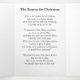 Recuerden a los que aman la verdadera razón para los Navidades con esta hermosa tarjeta de Navidades. Vuelve a poner al Cristo en Navidades con un bello poema sobre cómo Santa Claus y los regalos de Navidad son realmente sólo símbolos del regalo representado por el nacimiento de Cristo, y cómo se dio de sí mismo para mostrarnos todo el Camino. Este es un poema especial para compartir con los niños cuando se abren regalos -una nueva tradición de Navidades para mantener la atención en dónde debería estar.
