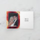El enfoque de esta tarjeta de agradecimiento de boda con geoda moderna es la imagen de una rebanada de ágata roja y un marco blanco con su texto.