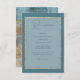 Esta tarjeta de recepción de boda cuenta con una playa abstracta azul y dorada y un fondo de agua, con una parte delantera verde azulado sólido y un área de texto con marco de purpurina dorada falsa. Moderno y único, es perfecto para una boda en la playa o junto al mar. Creado por Simply Farmhouse Press, es parte de la suite de boda Moderna Abstracta de Playa Verde Azul y Dorado.
