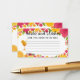 Reúna los más sentidos deseos y la invaluable guía para la futura novia con nuestra deliciosa tarjeta de consejo "Love at First Spritz"! Esta encantadora tarjeta de alojamiento complementa perfectamente su temática "Love at First Spritz", con vibrantes naranjas de cítricos y exuberante vegetación. Está diseñado para invitar a los invitados a compartir sus mejores consejos matrimoniales, buenos deseos, o incluso ideas nocturnas para la pareja feliz. Esta tarjeta de consejo para duchas de novias es un complemento esencial para tus invitaciones, asegurando que los clientes tengan la oportunidad de preparar sus perlas de sabiduría antes del evento. El alegre diseño de cítricos combina a la perfección con la estética general de la ducha, creando un ambiente cohesivo y acogedor para su celebración. Es una manera maravillosa de crear un querido aguijón para la novia y el novio, lleno de mensajes amorosos y consejos prácticos para su viaje juntos. Personalizar fácilmente esta tarjeta de consejo con mensajes como "Palabras de sabiduría", "Receta para un matrimonio feliz" o "Idea de noche de citas". Puede personalizar los tipos de letra, los colores y el diseño para que se correspondan perfectamente con el tema y la paleta de colores únicos de su ducha. Estas tarjetas de gabinete de alta calidad tienen el tamaño adecuado para las invitaciones estándar. Coordine estas hermosas tarjetas de consejo de "Amor en primer momento" con sus invitaciones, señales de bienvenida y otros artículos de papelería de fiesta para una celebración perfectamente cohesiva y memorable para la futura novia. Haga clic en "Personalizar Now" para personalizar su tarjeta de consejo "Love at First Spritz" y obtener una tesorería de amor y sabiduría para la pareja feliz. Amo en la primera tarjeta de consejo de spritz, consejo de ducha de novia cítricos, tarjeta de sabiduría de la ducha de boda, tarjeta de consejo con temática naranja, ducha botánica de novia, tarjeta de consejo para personalizados, ducha de verano de novia, deseos personalizados tarjeta de consejo