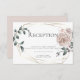 Invitación a la recepción de boda | Rosas de acuarela rosa polvoriento pintadas a mano alrededor de un marco geométrico de plata o dorado con follaje verde salvia en estilo boho. En la mayoría de las invitaciones, el reverso es un rosa polvoriento complementario. Personalice el texto, el estilo de fuente, el color y el tamaño. Arte original creado para BarefootBride™ por © WhimsicalArtwork™ - Esta es parte de una suite completa de papelería de boda con papelería para boda, baby shower y otros eventos.
