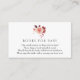 Una tarjeta de inserción para la ducha para bebés solicitada por un libro. Con flores de color burdeos y vegetación con poema: "UNA PEQUEÑA PEQUEÑA PETICIÓN, ESPERAMOS QUE NO SEA DEMASIADO DIFÍCIL POR FAVOR TRAER UN LIBRO EN LUGAR DE UNA TARJETA QUE ELLOS ENCANTARÁN EL LIBRO, BIEN AMADOS O NUEVOS POR FAVOR, ¡RÓTULO EL INTERIOR CON UN MENSAJE!"