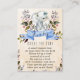 Esta tarjeta de solicitud de libro coincide con la invitación a la ducha de bebé de elefantes florales y azules y otros artículos en mi tienda. Puedes incluir esto en tu invitación como una solicitud tierna para un libro para tu bebé. Pegatinas coincidentes y tarjetas de rifa de pañales también disponibles en esta colección, por favor visite mi tienda.