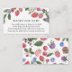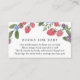Una tarjeta de inserción para la ducha para bebés solicitada por un libro. Con un ramo de bayas y vegetación con poema: "UNA PEQUEÑA PEQUEÑA PETICIÓN, ESPERAMOS QUE NO SEA DEMASIADO DIFÍCIL POR FAVOR TRAER UN LIBRO EN LUGAR DE UNA TARJETA QUE ELLOS ENCANTARÁN EL LIBRO, BIEN AMADOS O MARCA NUEVA POR FAVOR RÓTULO EL INTERIOR CON UN MENSAJE DE USO."