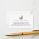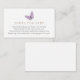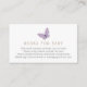 Una tarjeta de inserción para la ducha para bebés solicitada por un libro. Con una mariposa morada con poema: "UNA PEQUEÑA PEQUEÑA PETICIÓN, ESPERAMOS QUE NO SEA DIFÍCIL POR FAVOR TRAER UN LIBRO EN LUGAR DE UNA TARJETA QUE ELLOS PRESIONARÁN EL LIBRO, BIEN QUERIDOS O NUEVOS POR FAVOR RÓTULO EL INTERIOR CON UN MENSAJE."