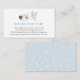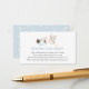 Una tarjeta de inserción para la ducha para bebés solicitada por un libro. Con una cigüeña acuarela que lleva un bebé envuelto en una manta azul con poema: "UNA PEQUEÑA SOLICITUD, ESPERAMOS QUE NO SEA DEMASIADO DIFÍCIL POR FAVOR TRAER UN LIBRO EN LUGAR DE UNA TARJETA QUE ELLOS PRESIONARÁN EL LIBRO, BIEN QUERIDOS O NUEVOS POR FAVOR."
