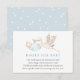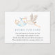 Una tarjeta de inserción para la ducha para bebés solicitada por un libro. Con una cigüeña acuarela que lleva un bebé envuelto en una manta azul con poema: "UNA PEQUEÑA SOLICITUD, ESPERAMOS QUE NO SEA DEMASIADO DIFÍCIL POR FAVOR TRAER UN LIBRO EN LUGAR DE UNA TARJETA QUE ELLOS PRESIONARÁN EL LIBRO, BIEN QUERIDOS O NUEVOS POR FAVOR."