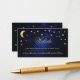 Una tarjeta de recinto para bodas de marina y oro para un boda celeste: texto dorado sobre un fondo nocturno estrellado, rodeado por la luna y las estrellas (que son un falso Relieve metalizado de oro). El sitio web del título está escrito en un guión caligráfico elegante. El texto está centrado.