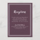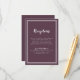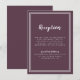 Simple, minimalista y elegante tarjeta de información de recepción de boda con un diseño contemporáneo con un borde de doble marco en blanco crujiente sobre un fondo morado de moda. La redacción tradicional proporciona una sofisticación atemporal y moderna. Personalice el diseño de la boda con sus detalles en letra blanca y caligrafía. La parte trasera de la tarjeta coincide en morado sólido.