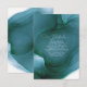 Un fondo abstracto que recuerda a la tinta líquida en tonos de verde azulado profundo a cian y blanco es el telón de fondo para un texto de escritura manuscrita elegante y diseños modernos en las piezas de esta hermosa suite boda. La tarjeta de detalles del boda que se muestra aquí incluye el texto de guión de arriba más el texto de secuencia de comandos opcional de 'detalles' y una plantilla para agregar su propia información pertinente del boda. Buscar ID762 para ver todas las piezas de coordinación de este conjunto.